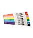 In verschillende kleuren leverbaar. Iedere verpakking bevat 6 cartridges met elk 350 bandjes